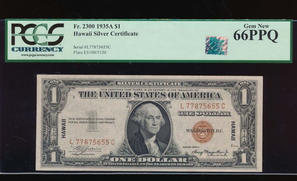 One 1935A $1 Hawaii Silver Certificate PCGS 66PPQ.