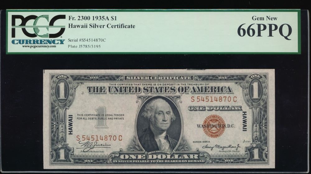 One 1935A $1 Hawaii Silver Certificate PCGS 66PPQ.