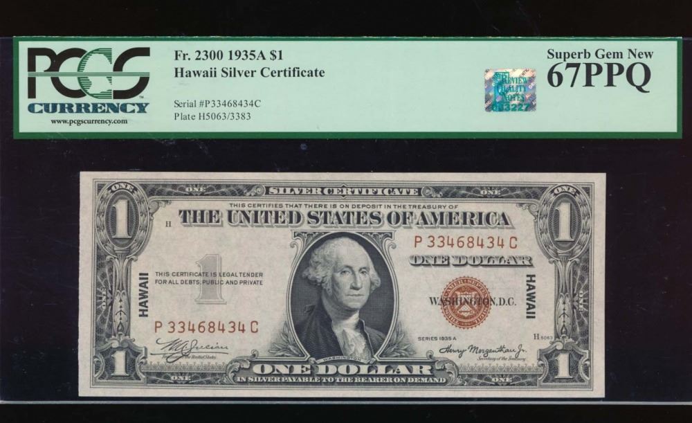 One 1935A $1 Hawaii Silver Certificate PCGS 67PPQ.