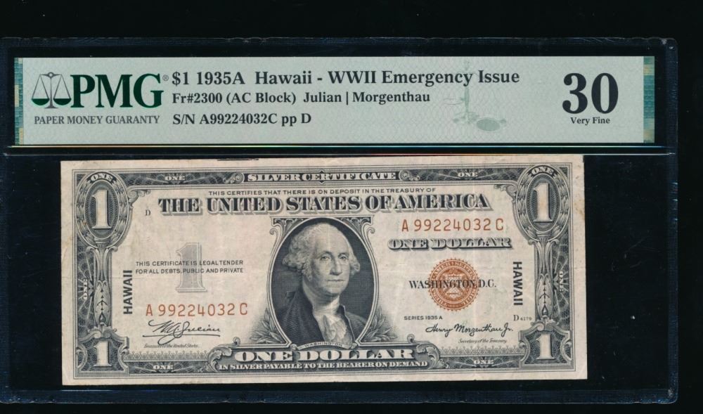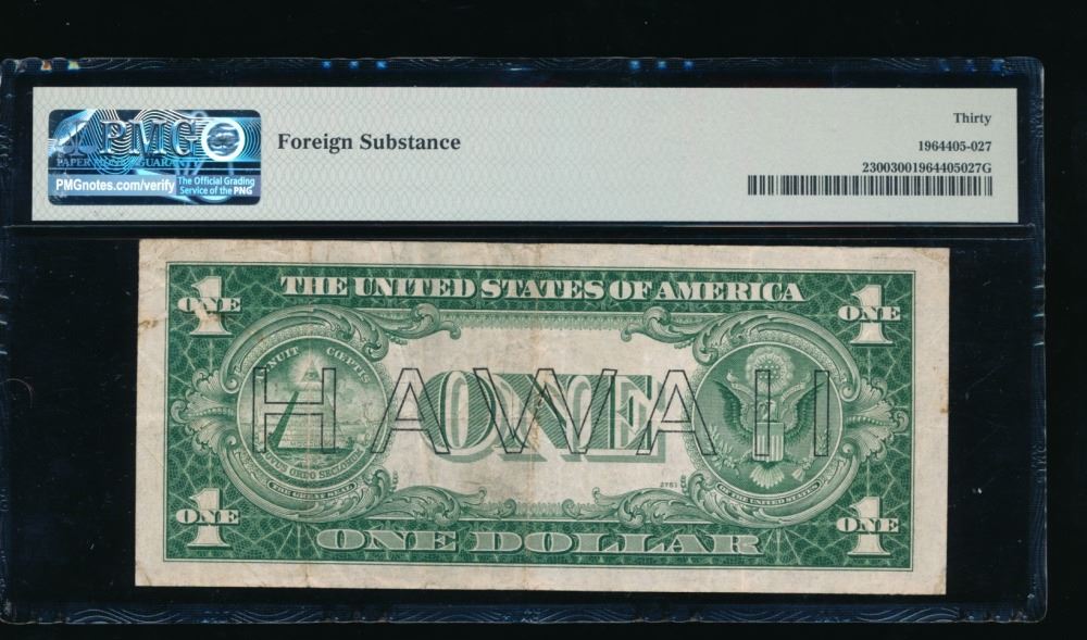 One 1935A $1 Hawaii Silver Certificate PMG 30.