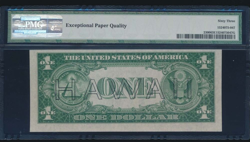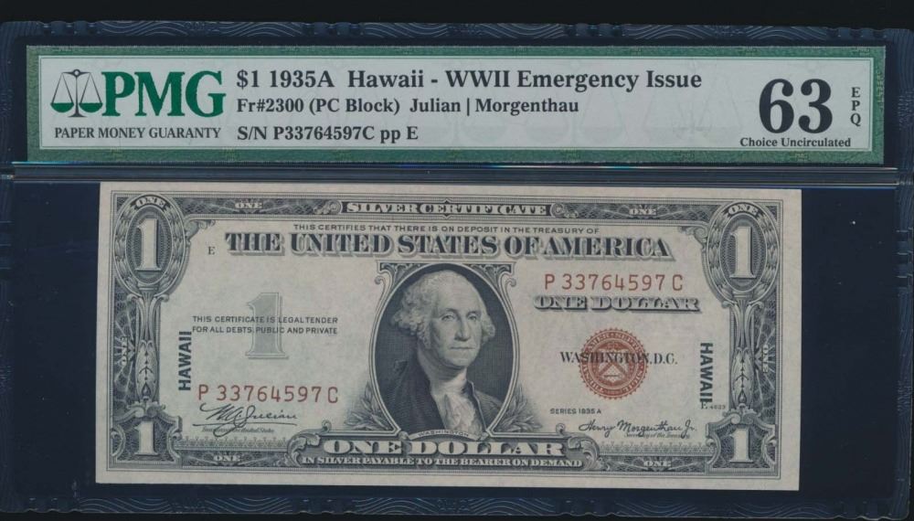 One 1935A $1 Hawaii Silver Certificate PMG 63EPQ.