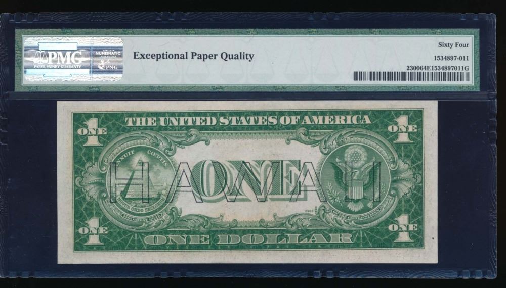 One 1935A $1 Hawaii Silver Certificate PMG 64EPQ.