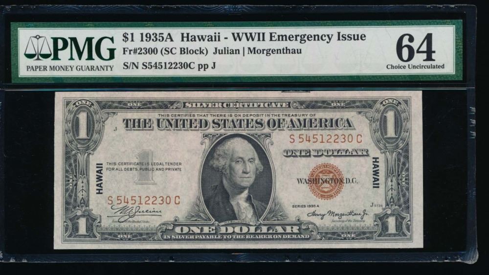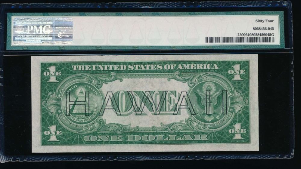 One 1935A $1 Hawaii Silver Certificate PMG 64.