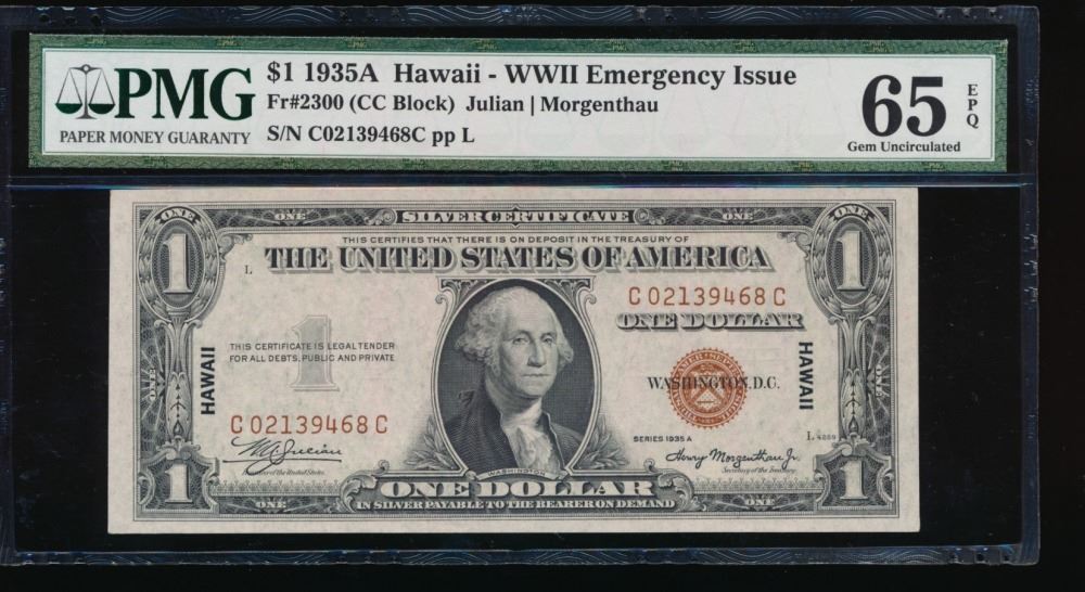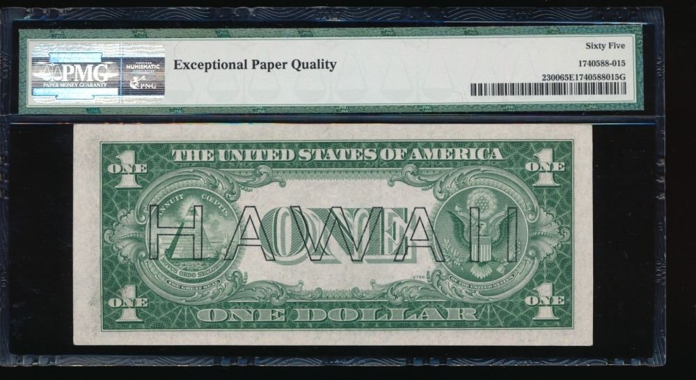 One 1935A $1 Hawaii Silver Certificate PMG 65EPQ.