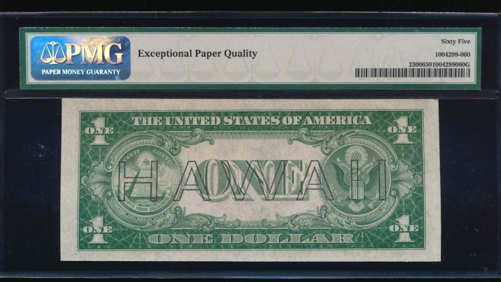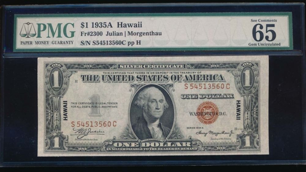 One 1935A $1 Hawaii Silver Certificate PMG 65EPQ.