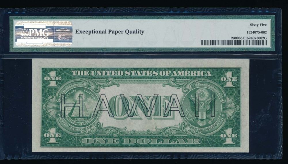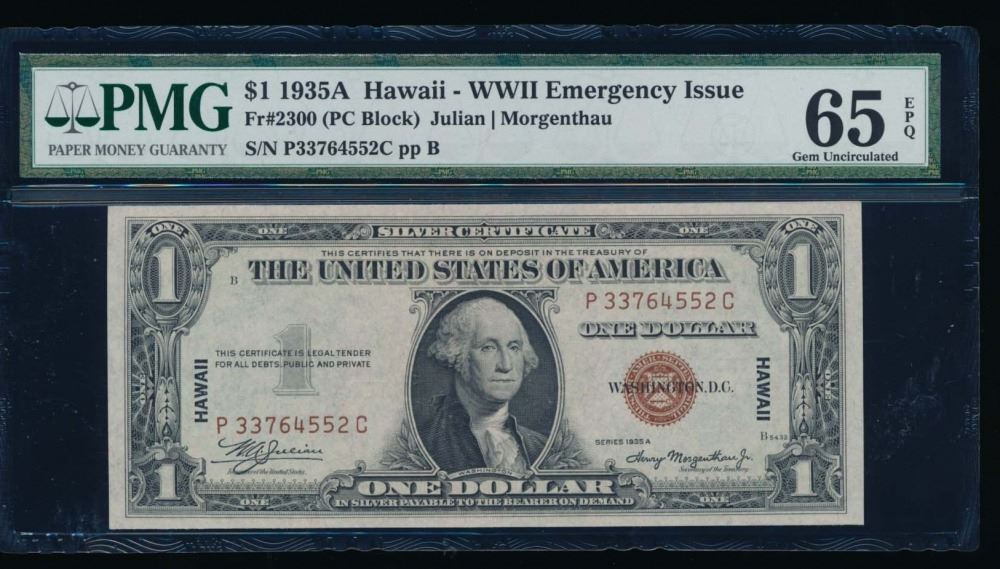 One 1935A $1 Hawaii Silver Certificate PMG 65EPQ.