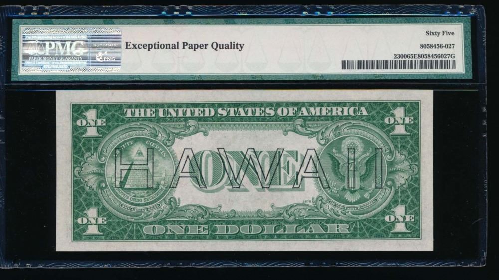 One 1935A $1 Hawaii Silver Certificate PMG 65EPQ.