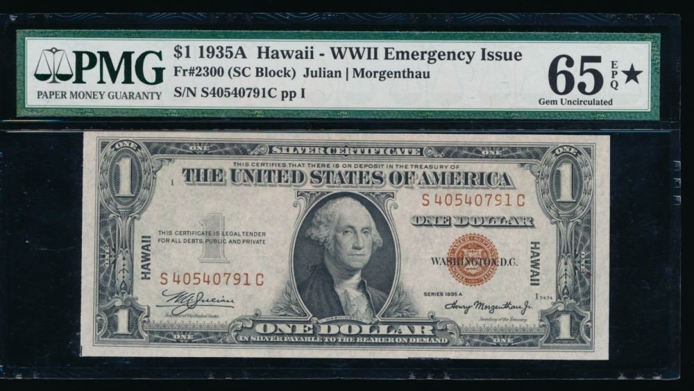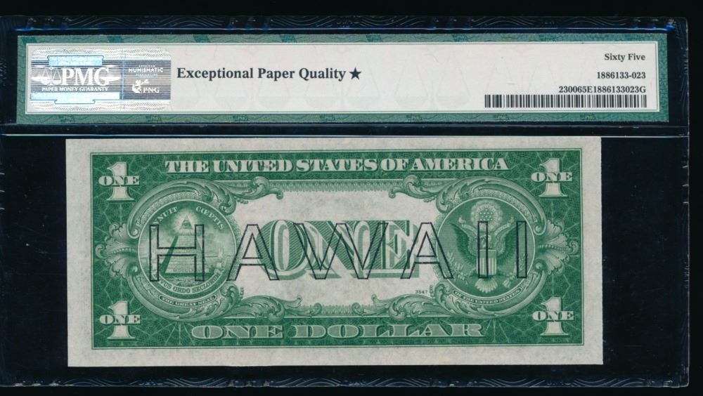 One 1935A $1 Hawaii Silver Certificate PMG 65EPQ*.