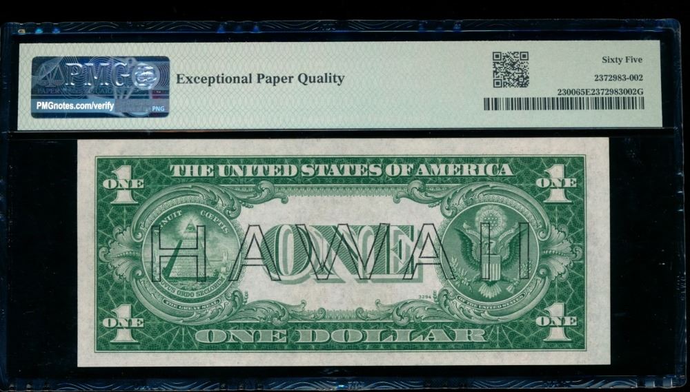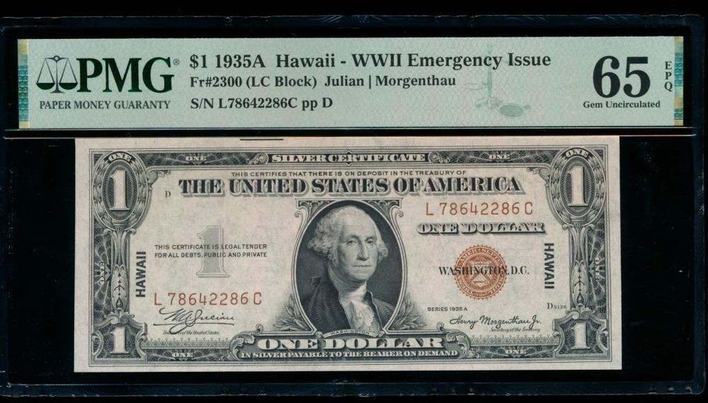 One 1935A $1 Hawaii Silver Certificate PMG 65EPQ.