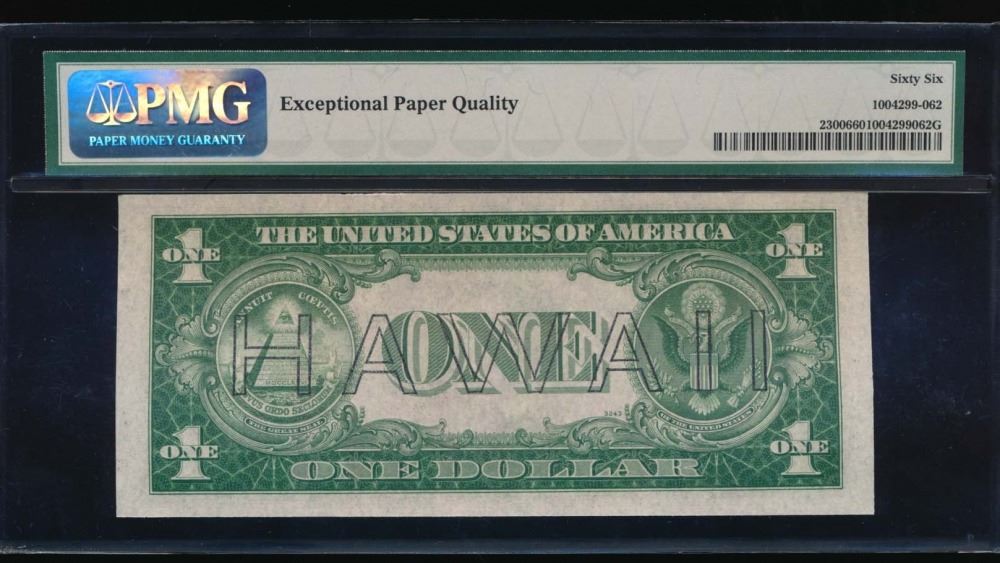 One 1935A $1 Hawaii Silver Certificate PMG 66EPQ.