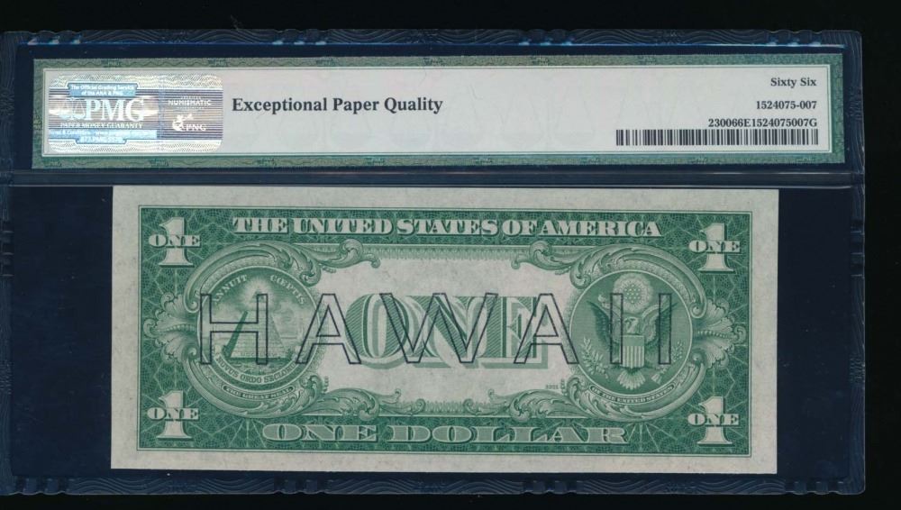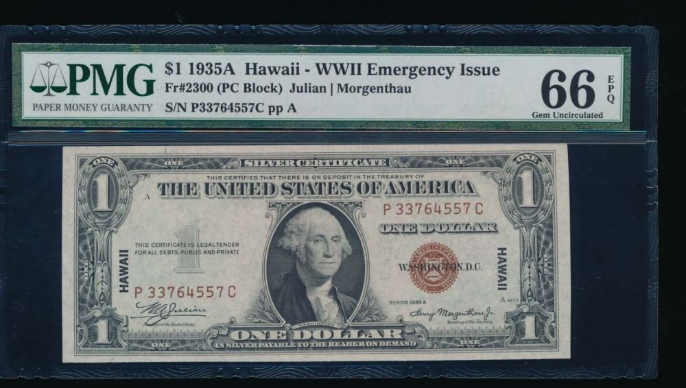 One 1935A $1 Hawaii Silver Certificate PMG 66EPQ.