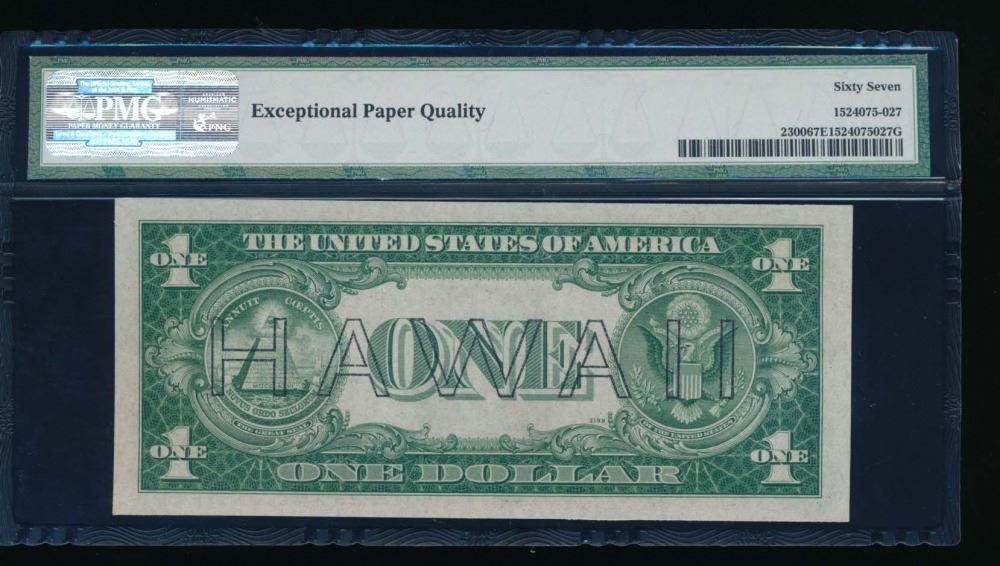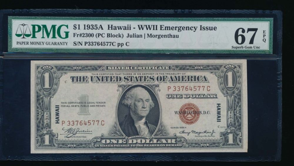 One 1935A $1 Hawaii Silver Certificate PMG 67EPQ.