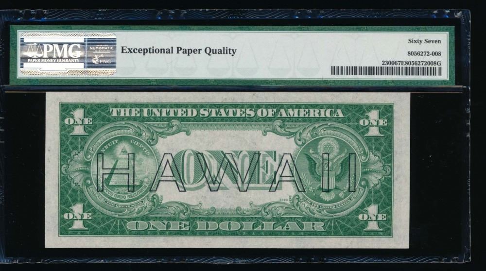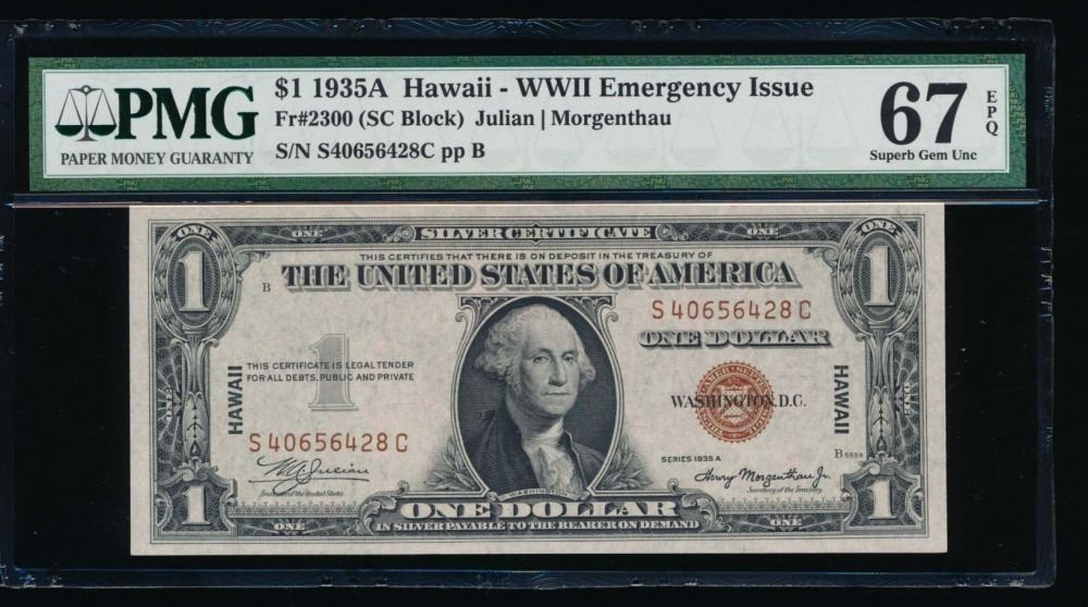 One 1935A $1 Hawaii Silver Certificate PMG 67EPQ.