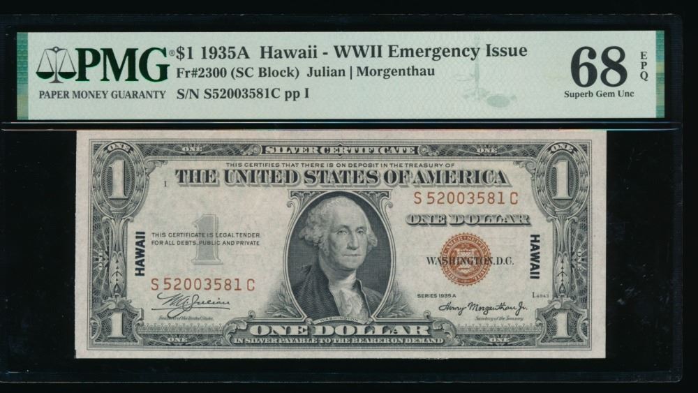 One 1935A $1 Hawaii Silver Certificate PMG 68EPQ.