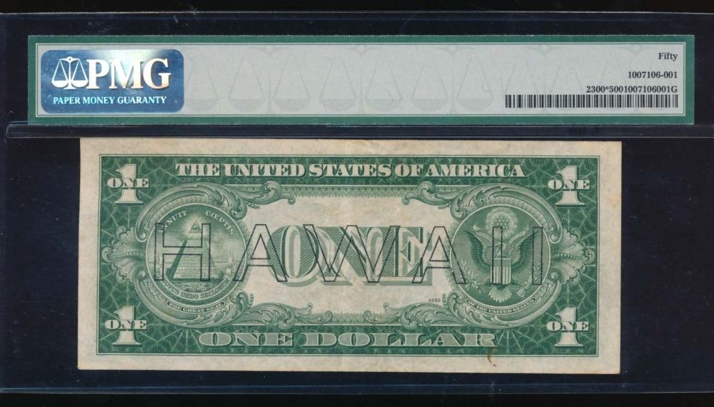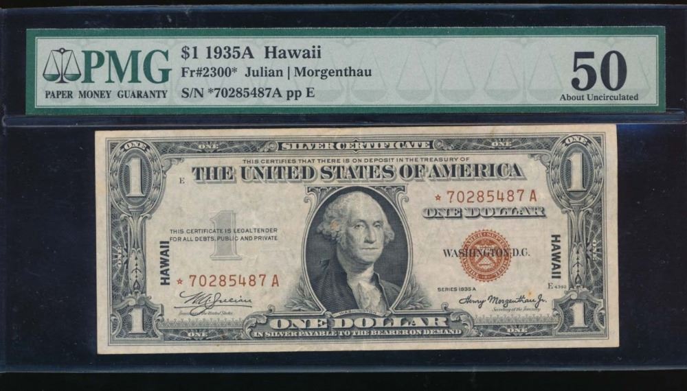 One 1935A $1 Hawaii Silver Certificate Star Note PMG 50.