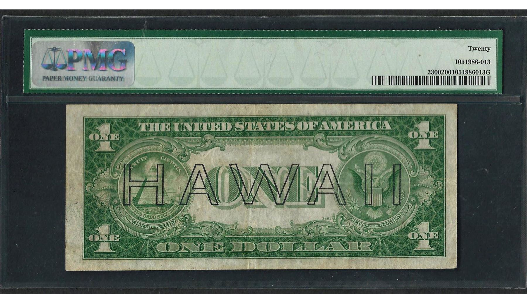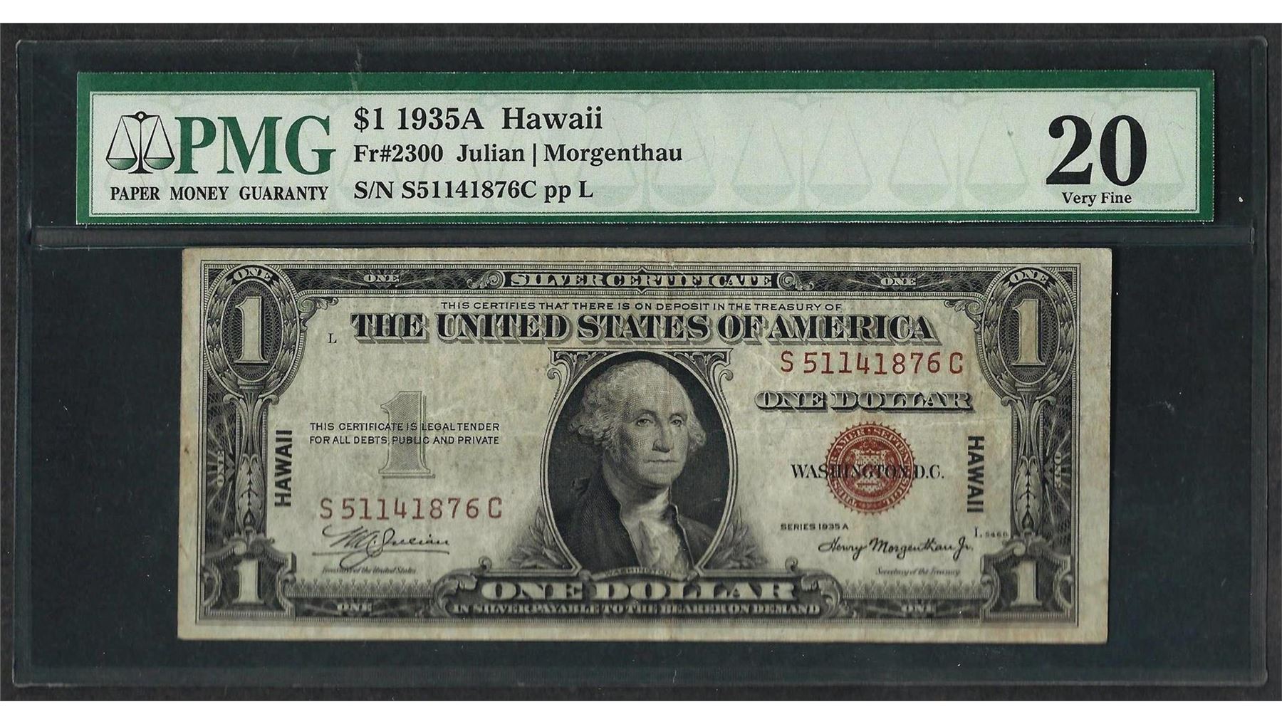One 1935A $1 Hawaii Silver Certificate WWII Emergency Note Fr.2300 PMG Very Fine 20. PMG Certified.