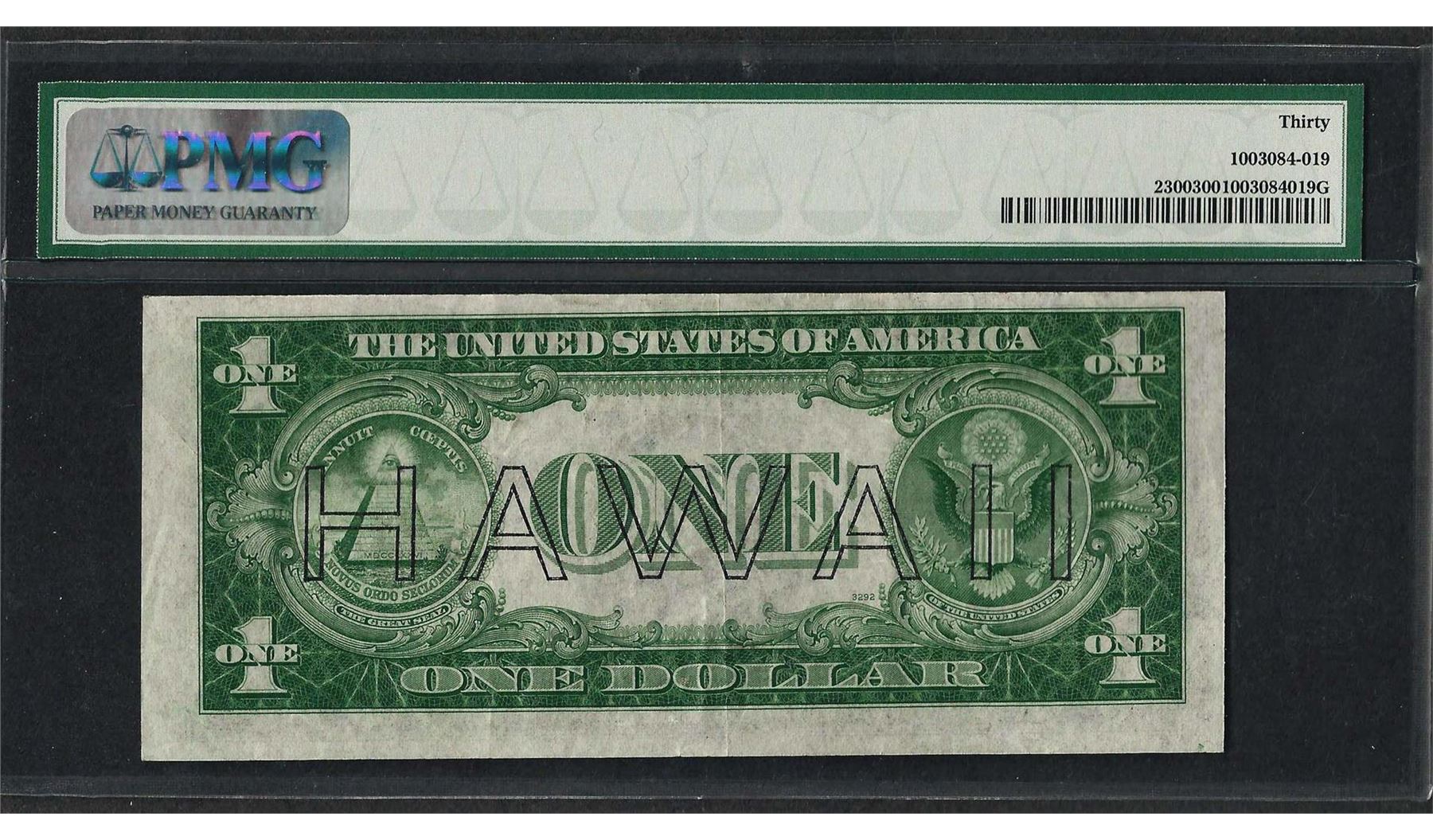 One 1935A $1 Hawaii Silver Certificate WWII Emergency Note Fr.2300 PMG Very Fine 30. PMG Certified.