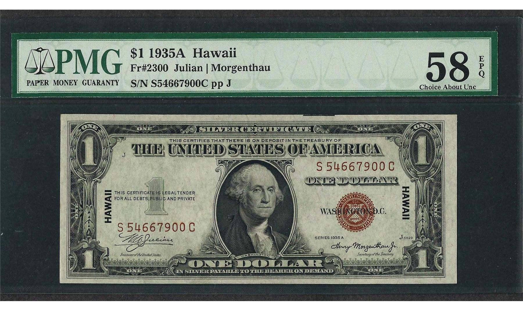 One 1935A $1 Hawaii Silver Certificate WWII Emergency Note PMG Choice About Unc. 58EPQ. PMG Certified.