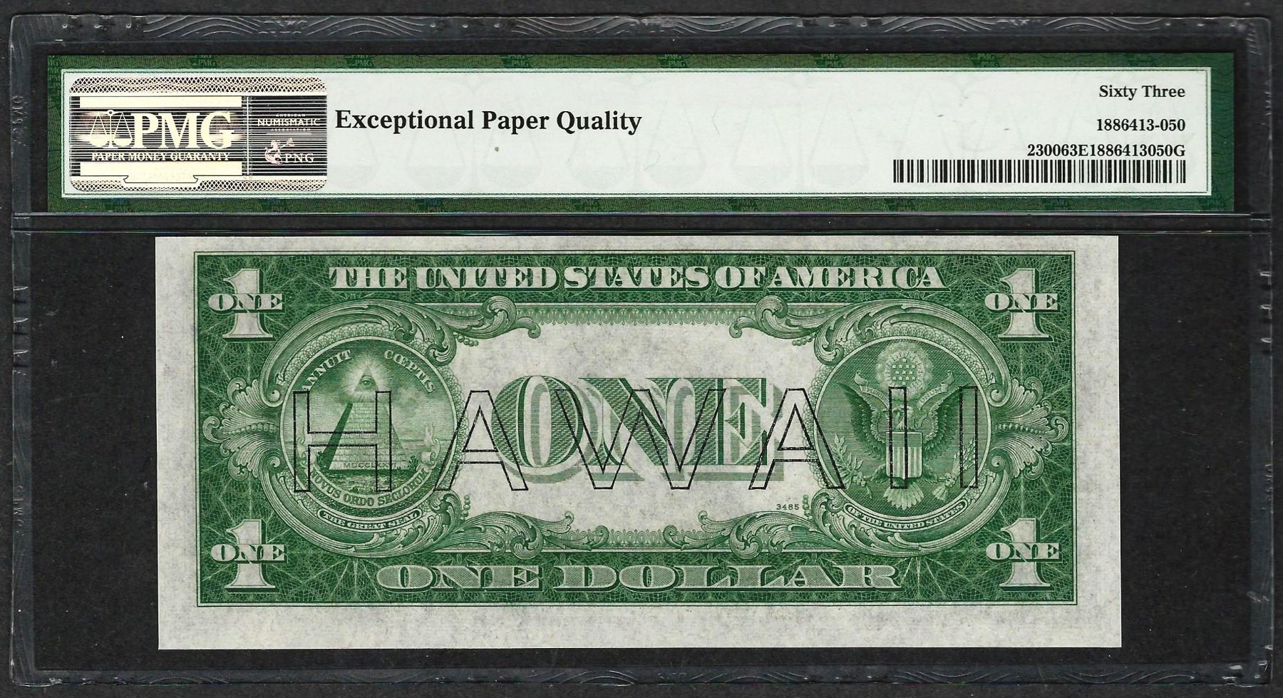 One 1935A $1 Hawaii Silver Certificate WWII Emergency Note PMG Choice Uncirculated 63EPQ.