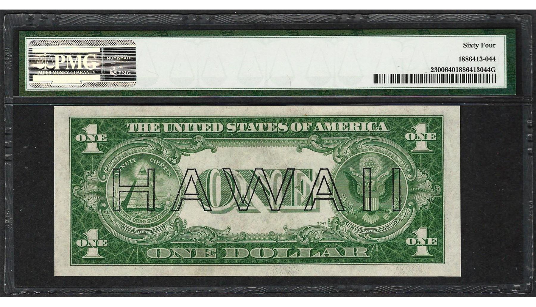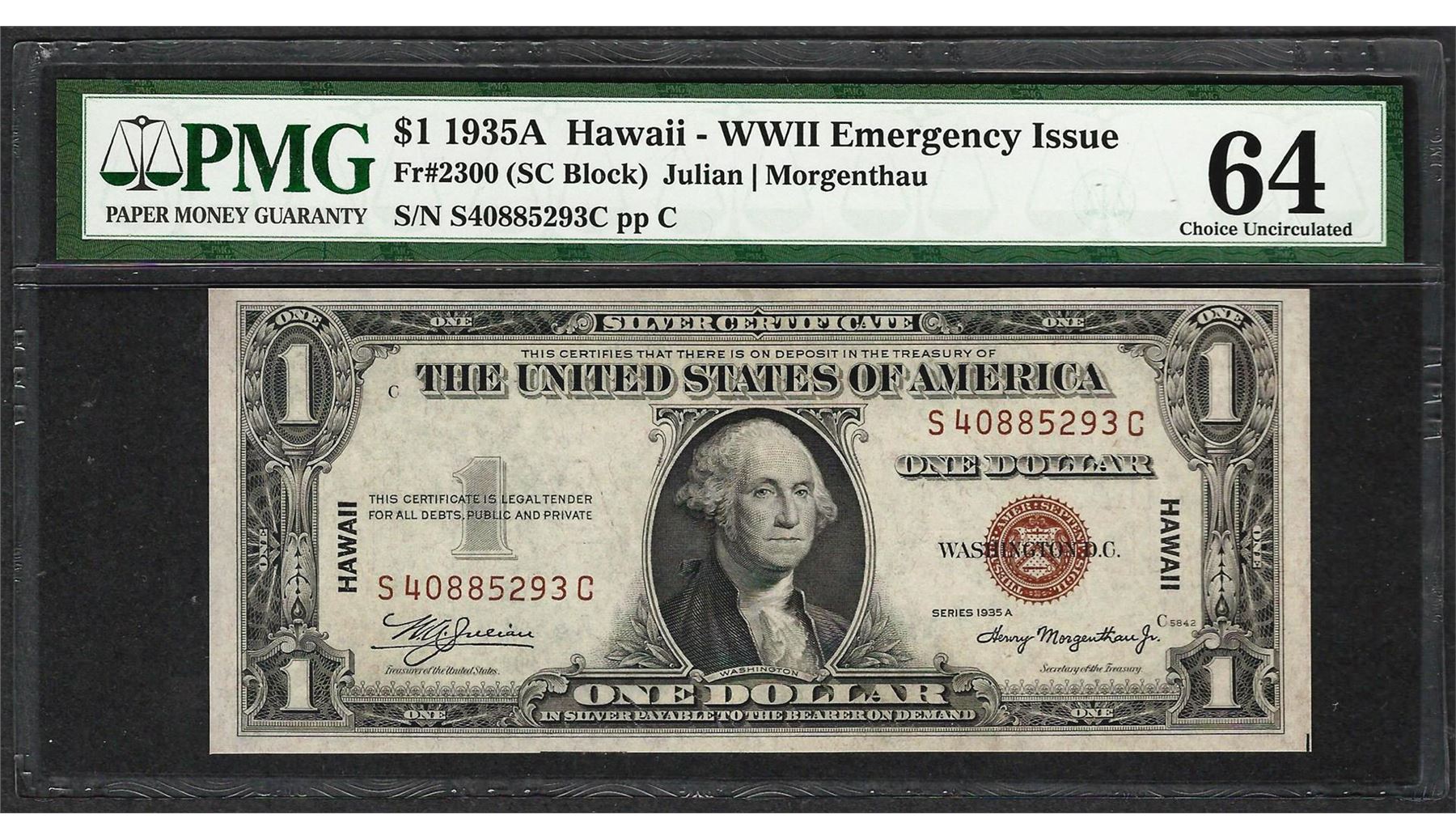One 1935A $1 Hawaii Silver Certificate WWII Emergency Note PMG Choice Uncirculated 64. PMG Certified.