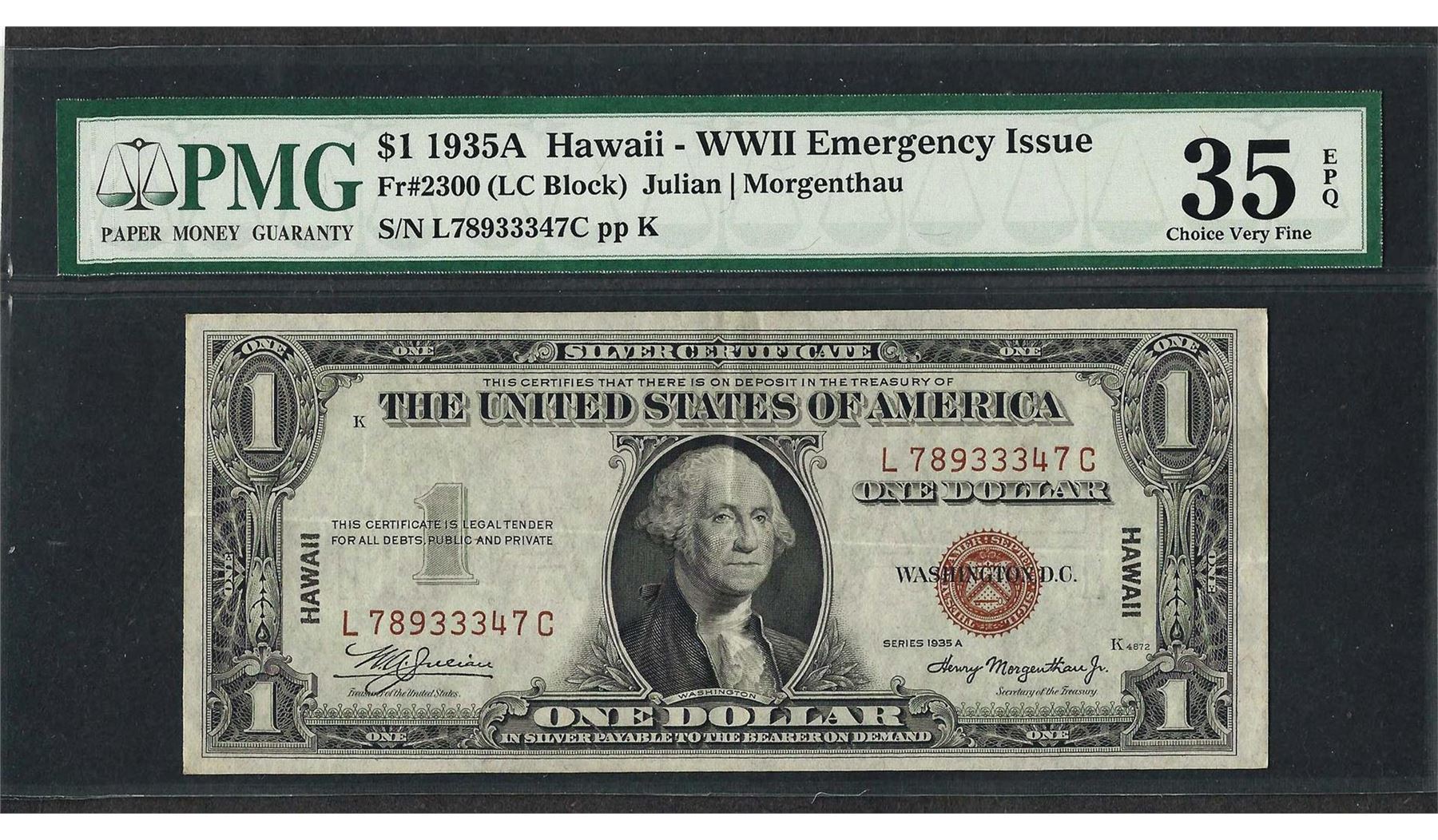 One 1935A $1 Hawaii Silver Certificate WWII Emergency Note PMG Choice Very Fine 35EPQ. PMG Certified.