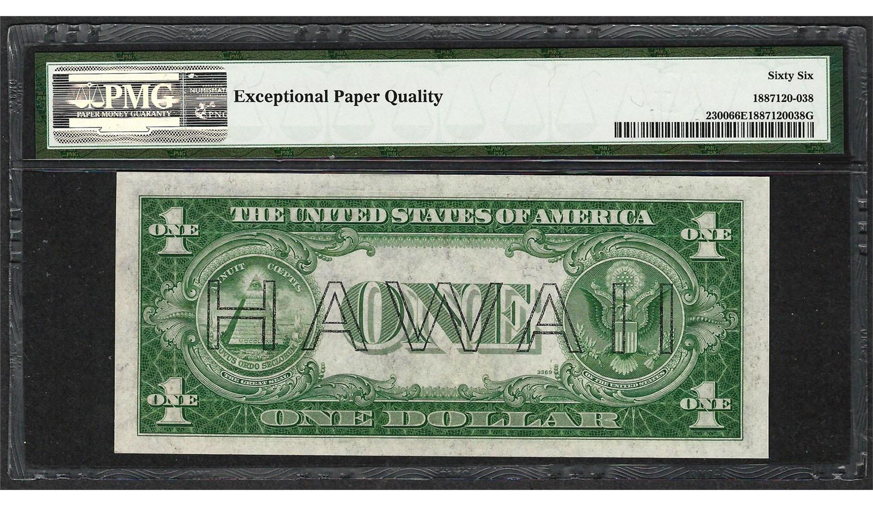 One 1935A $1 Hawaii Silver Certificate WWII Emergency Note PMG Gem Uncirculated 66EPQ. PMG Certified.