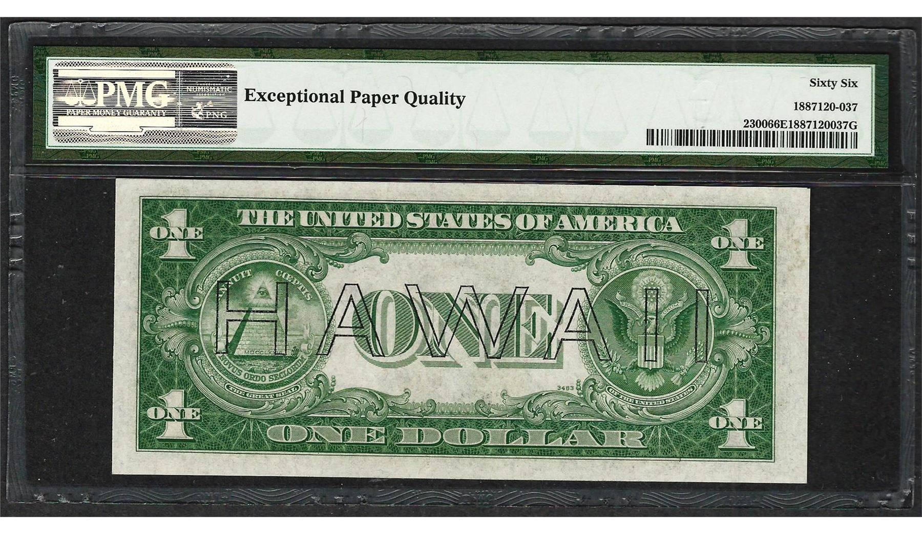 One 1935A $1 Hawaii Silver Certificate WWII Emergency Note PMG Gem Uncirculated 66EPQ. PMG Certified.