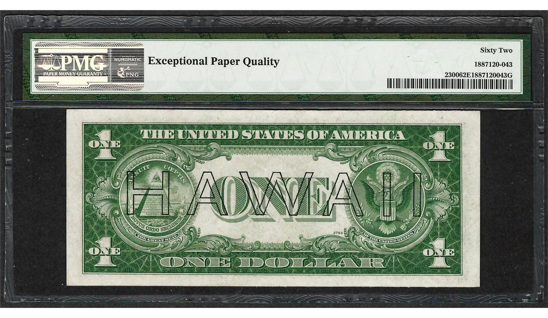 One 1935A $1 Hawaii Silver Certificate WWII Emergency Note PMG Uncirculated 62EPQ. PMG Certified.