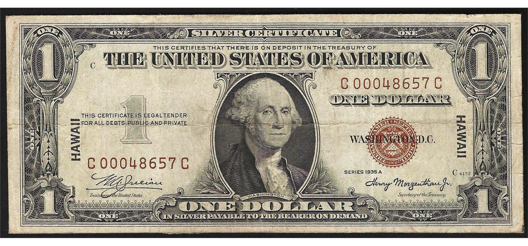 One 1935A $1 Hawaii Silver Certificate WWII Emergency Note.