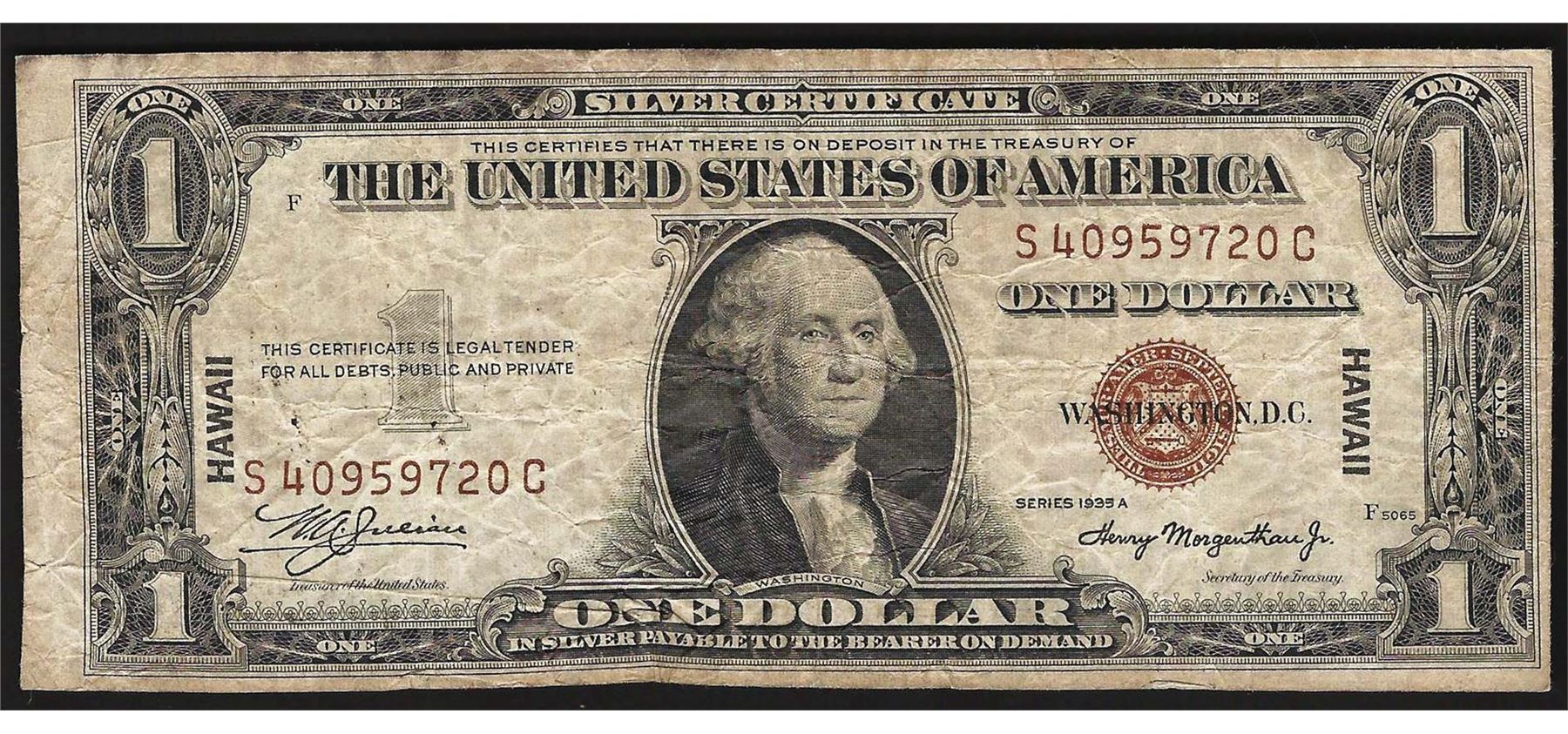 One 1935A $1 Hawaii Silver Certificate WWII Emergency Note.
