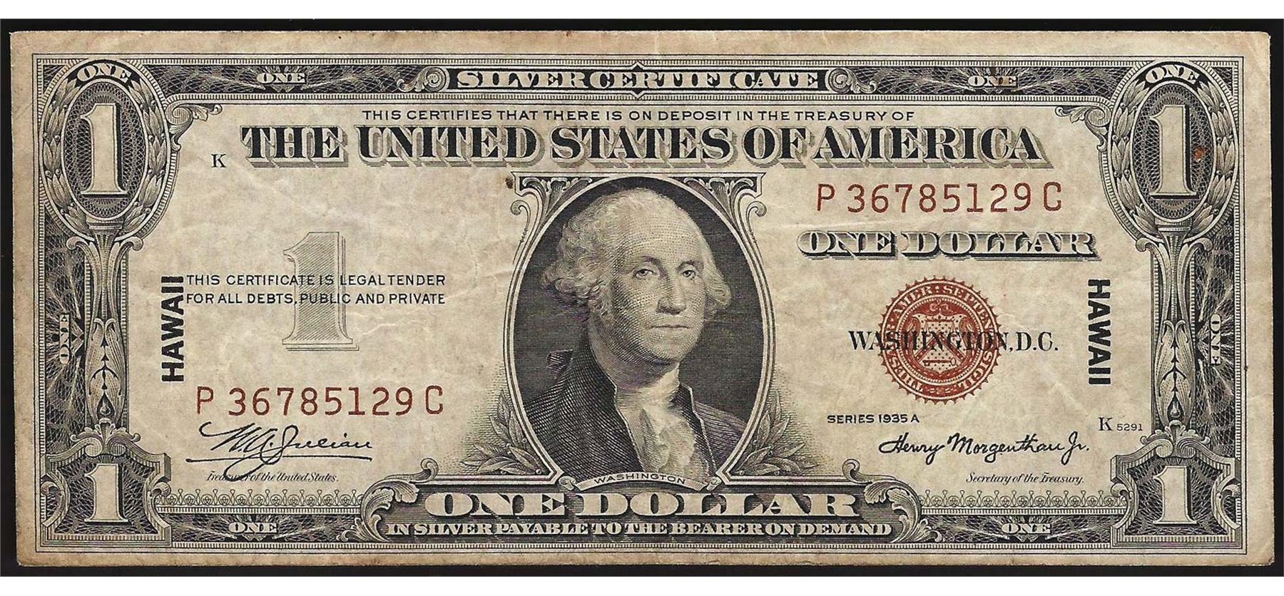 One 1935A $1 Hawaii Silver Certificate WWII Emergency Note.