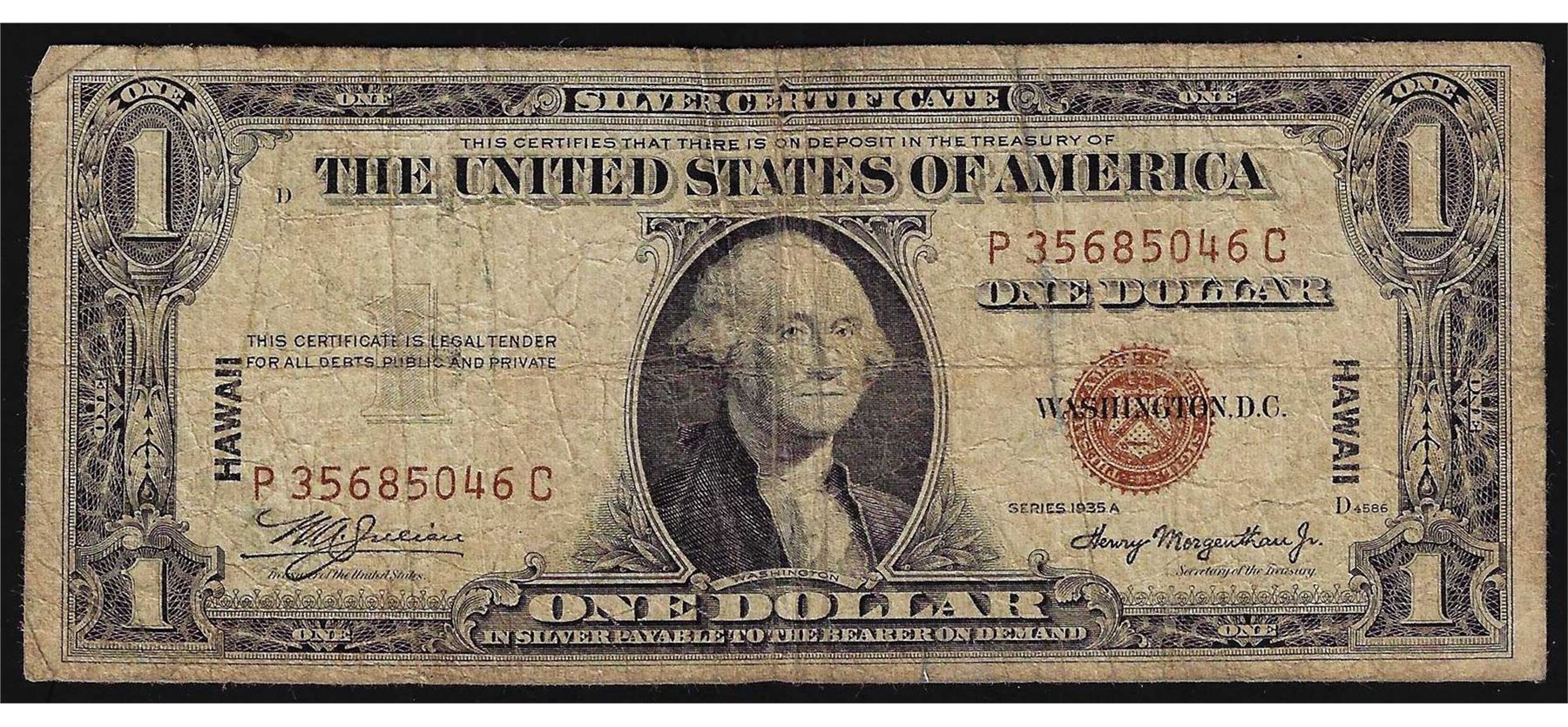 One 1935A $1 Hawaii Silver Certificate WWII Emergency Note.