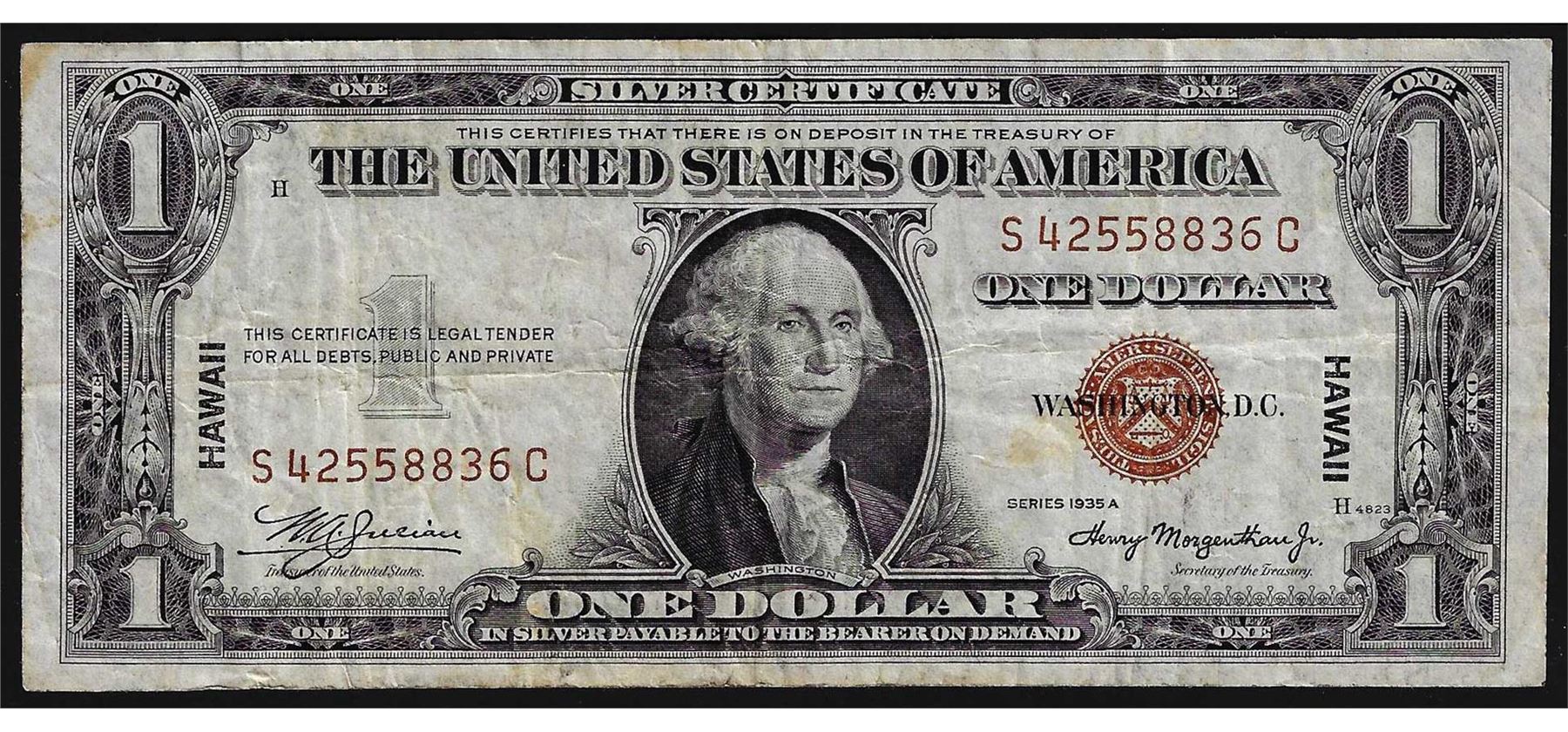 One 1935A $1 Hawaii Silver Certificate WWII Emergency Note.