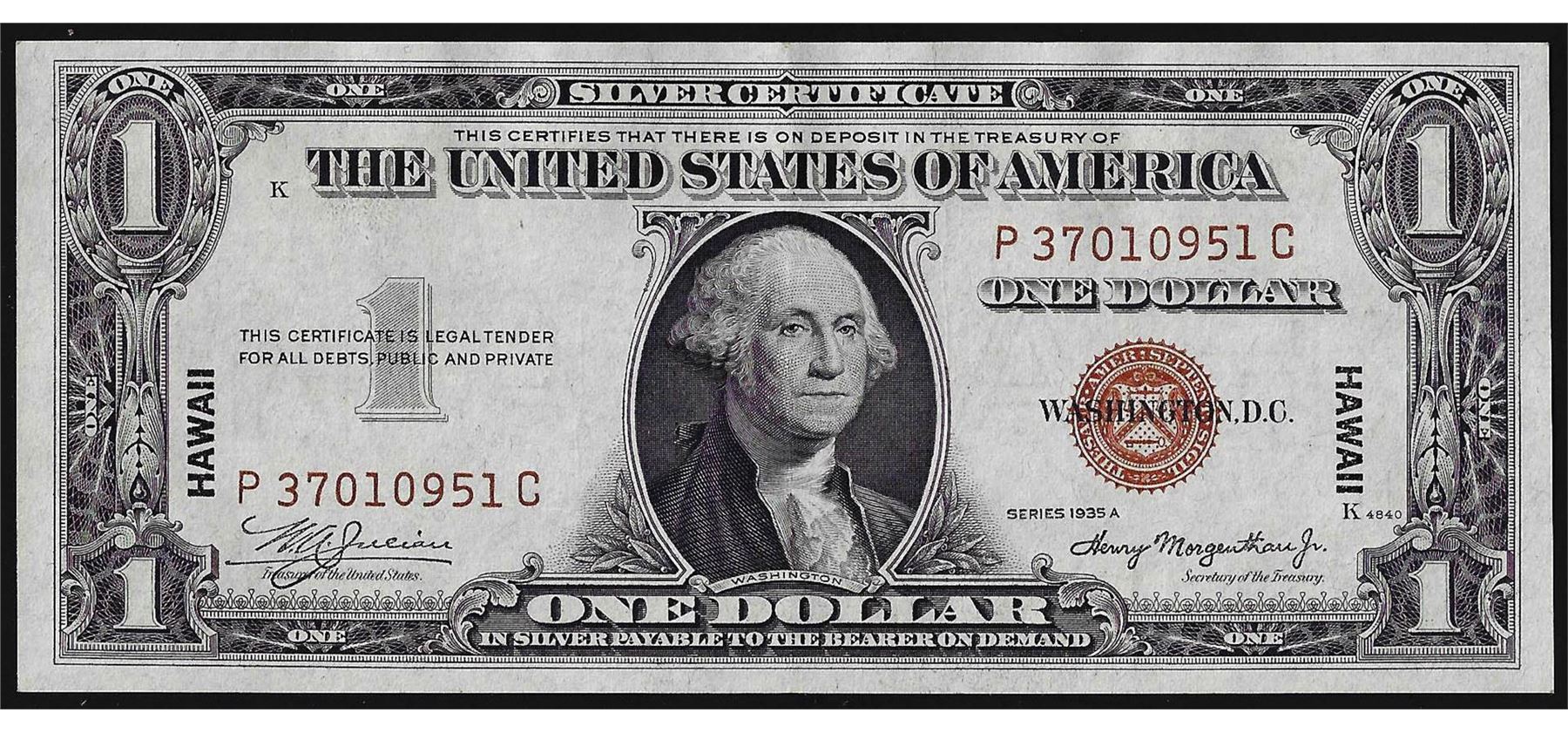 One 1935A $1 Hawaii Silver Certificate WWII Emergency Note.