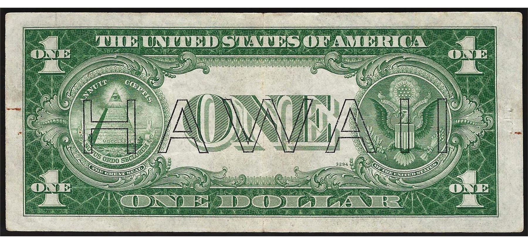 One 1935A $1 Hawaii Silver Certificate WWII Emergency Note.