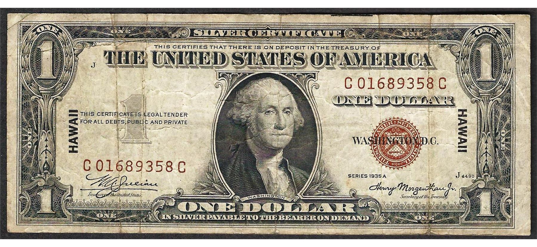 One 1935A $1 Hawaii Silver Certificate WWII Emergency Note.