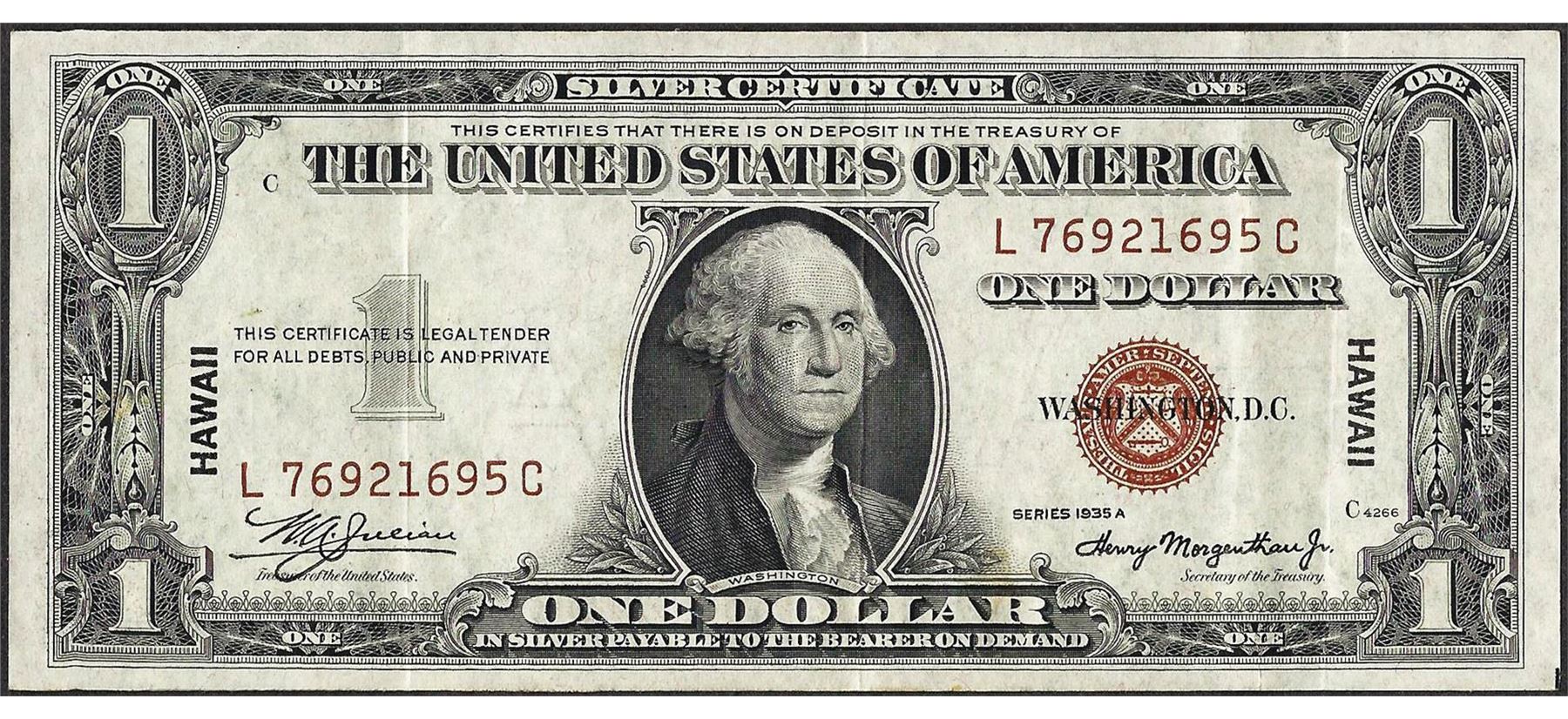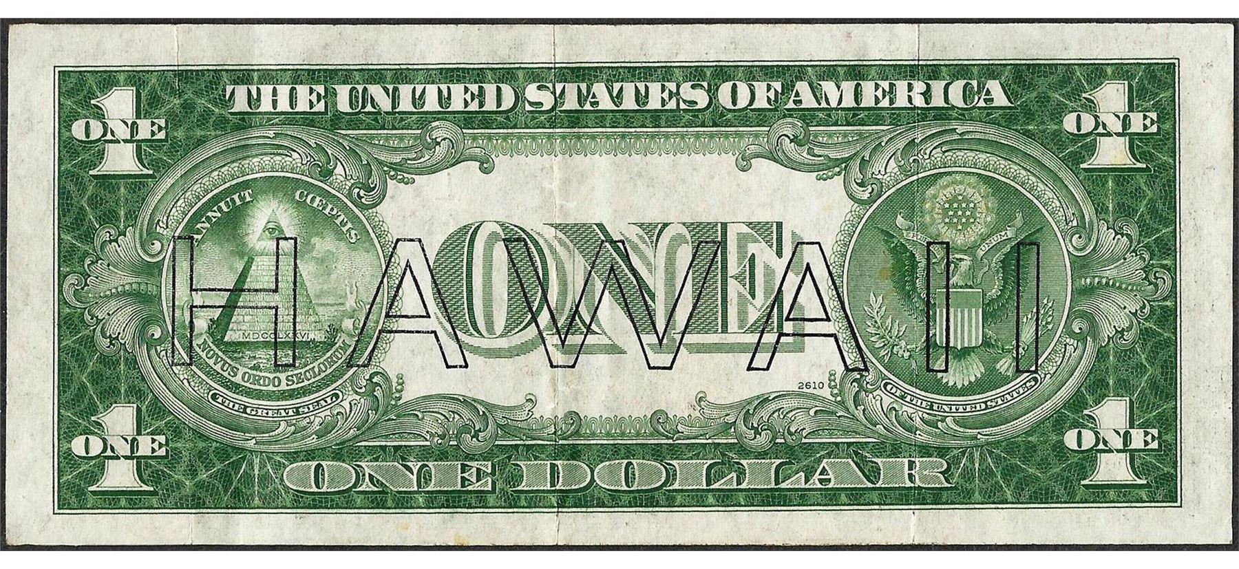 One 1935A $1 Hawaii Silver Certificate WWII Emergency Note.