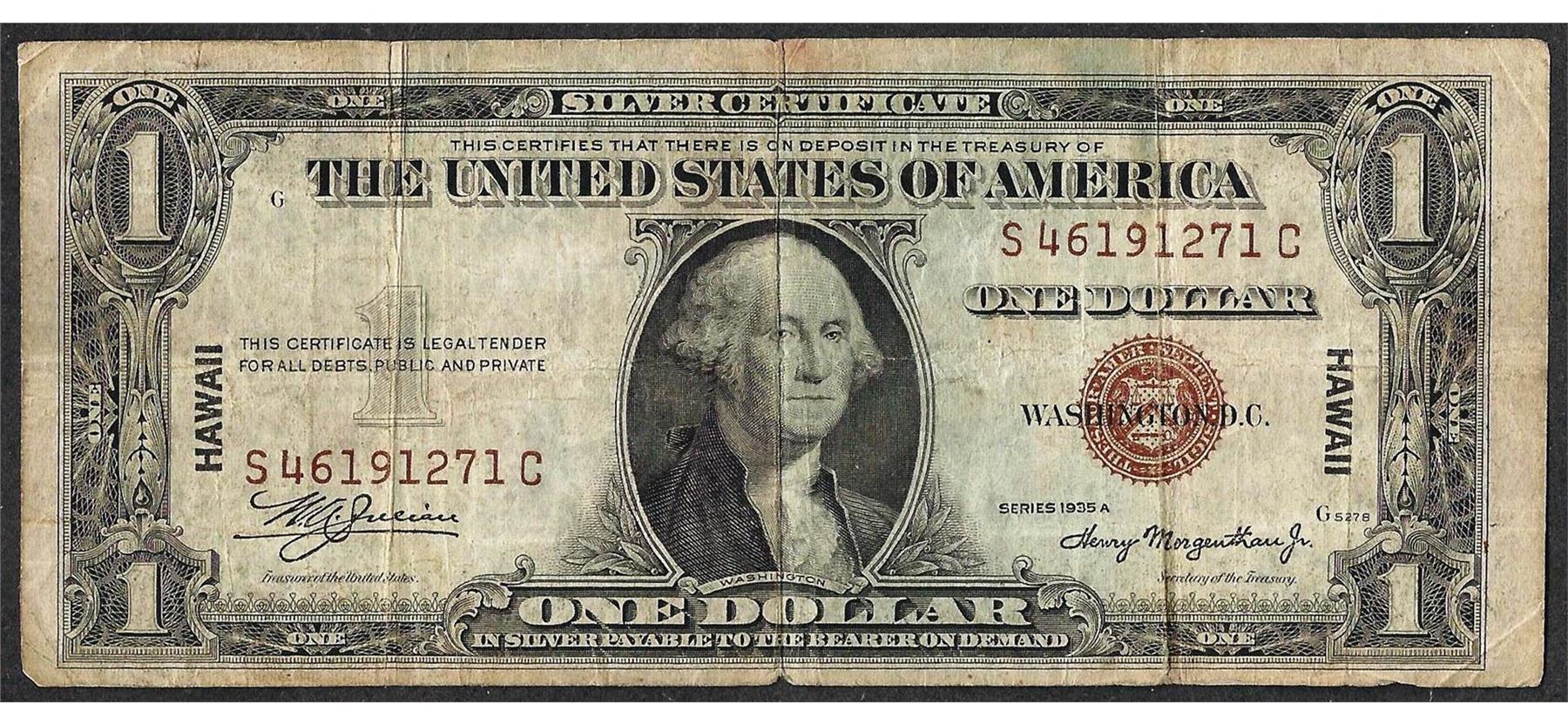 One 1935A $1 Hawaii Silver Certificate WWII Emergency Note.