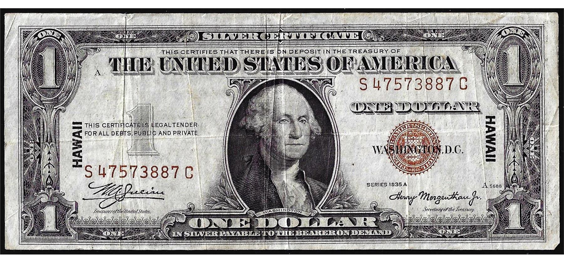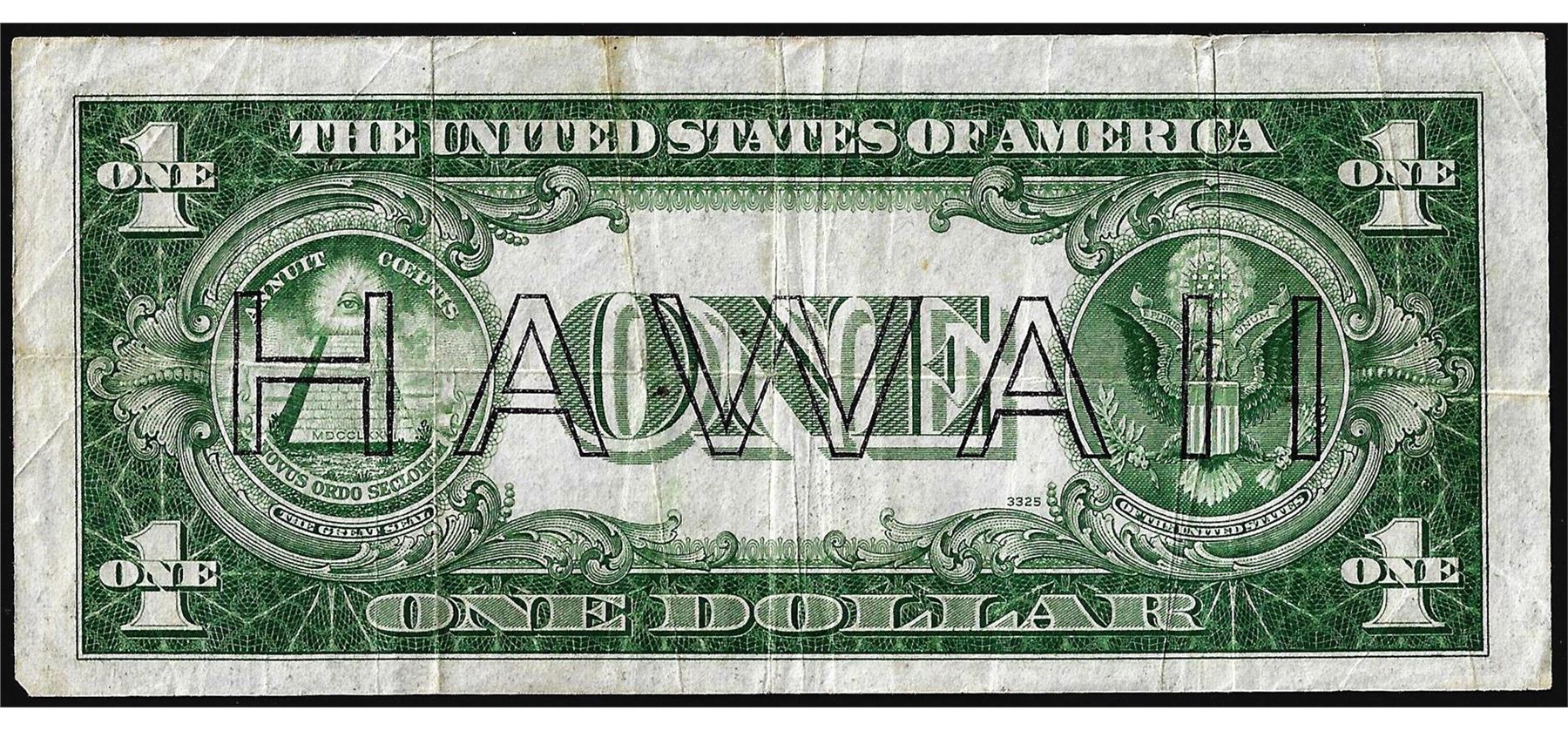 One 1935A $1 Hawaii WWII Emergency Issue Silver Certificate Note.