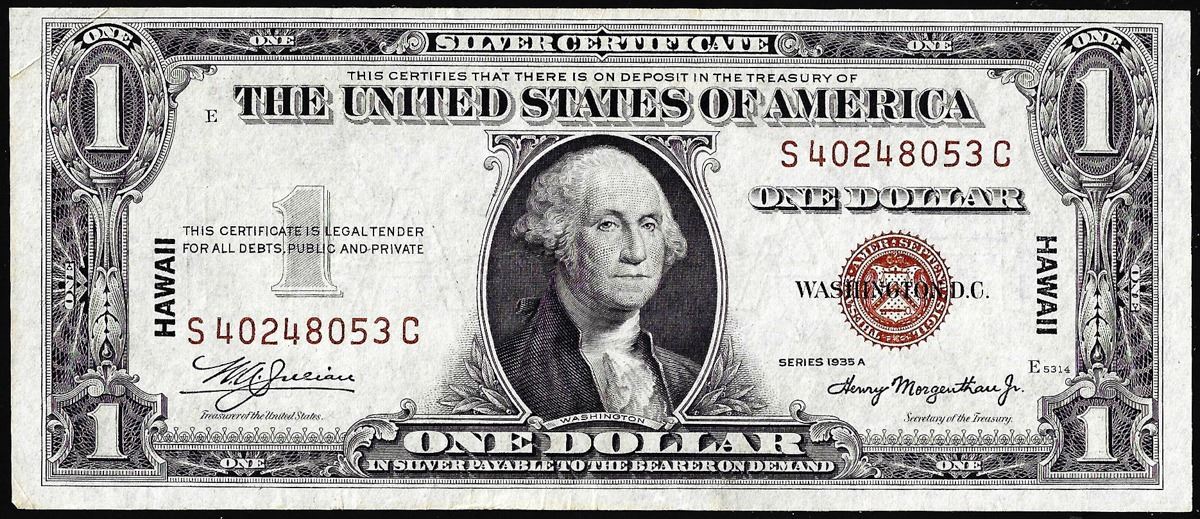 One 1935A $1 Hawaii WWII Emergency Issue Silver Certificate Note.