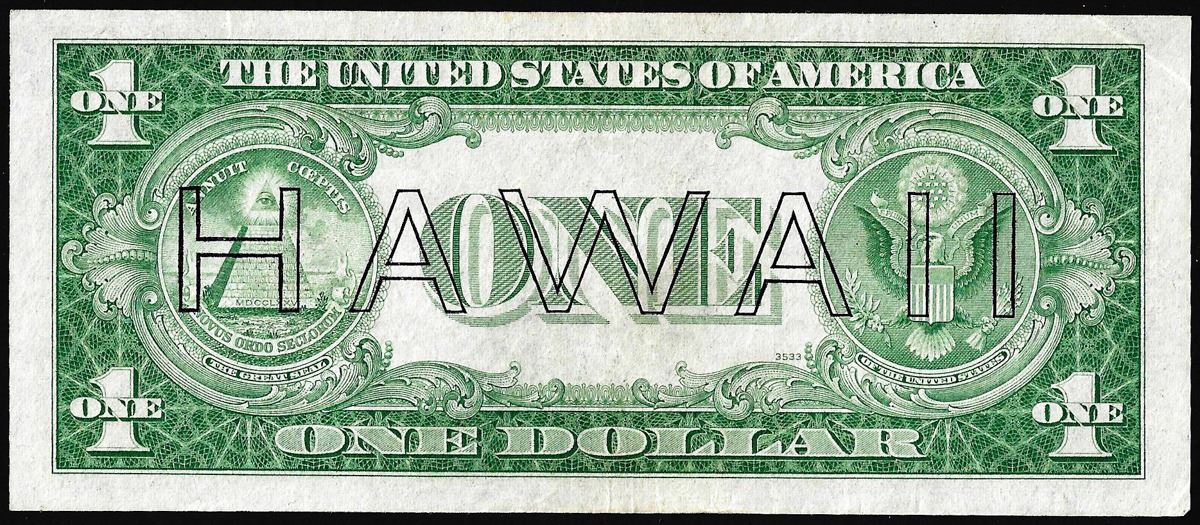 One 1935A $1 Hawaii WWII Emergency Issue Silver Certificate Note.