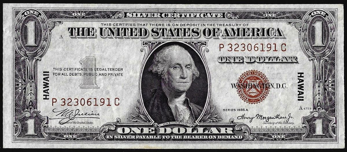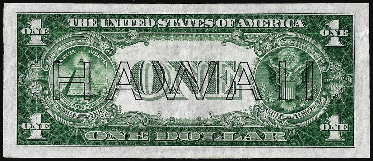 One 1935A $1 Hawaii WWII Emergency Issue Silver Certificate Note.