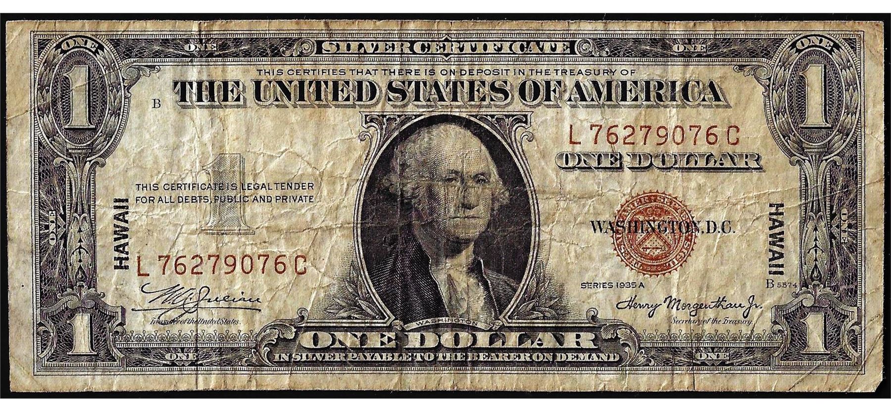 One 1935A $1 Hawaii WWII Emergency Issue Silver Certificate Note.