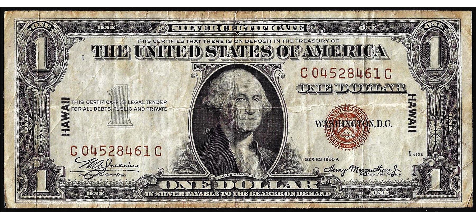 One 1935A $1 Hawaii WWII Emergency Issue Silver Certificate Note.