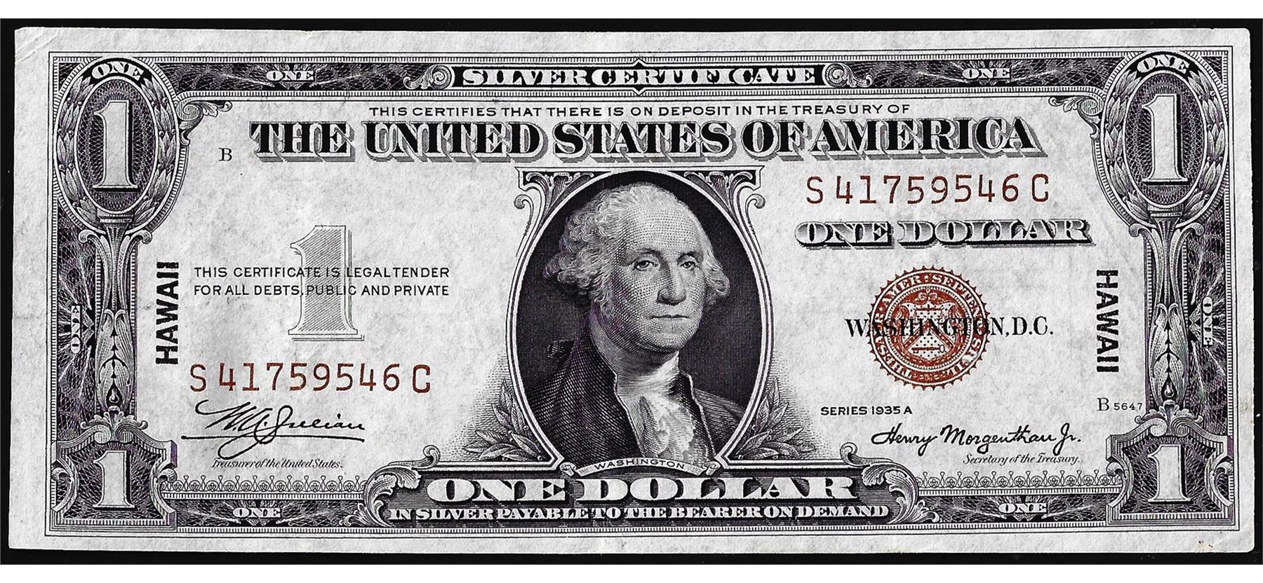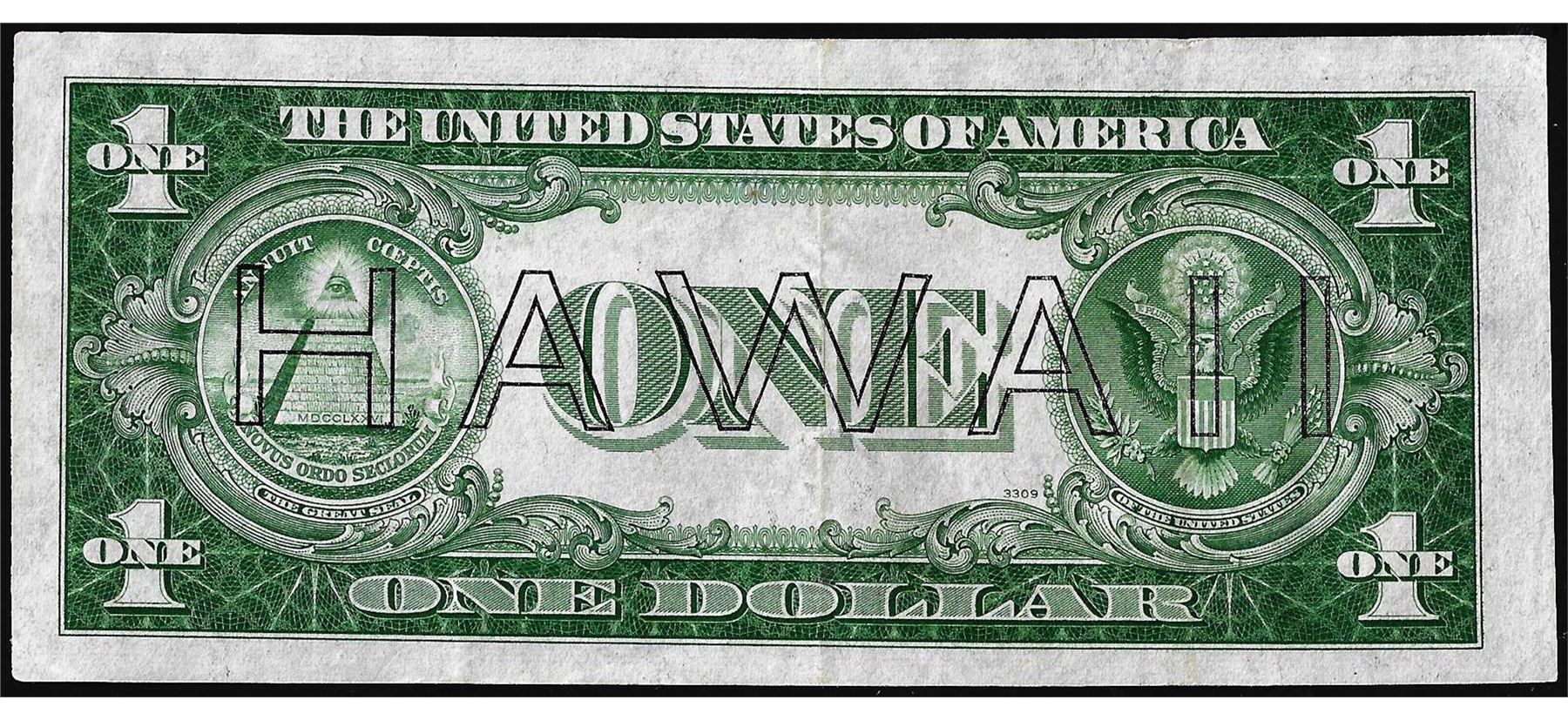 One 1935A $1 Hawaii WWII Emergency Issue Silver Certificate Note.