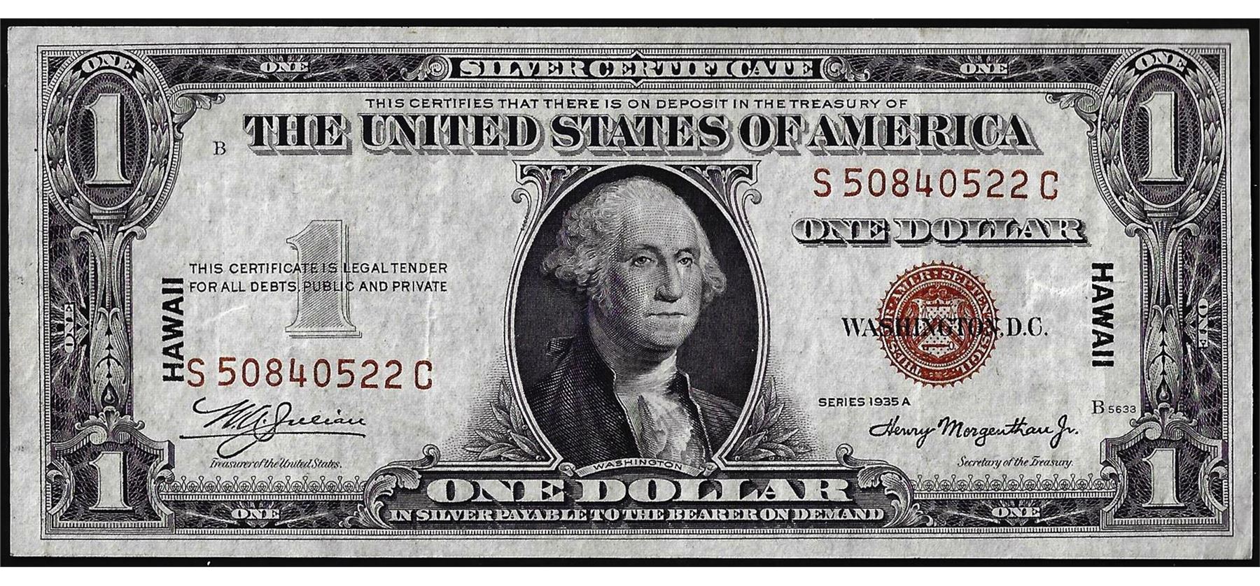 One 1935A $1 Hawaii WWII Emergency Issue Silver Certificate Note.