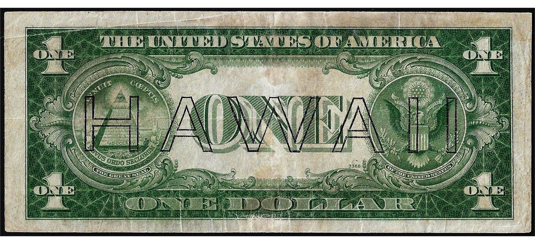 One 1935A $1 Hawaii WWII Emergency Issue Silver Certificate Note.