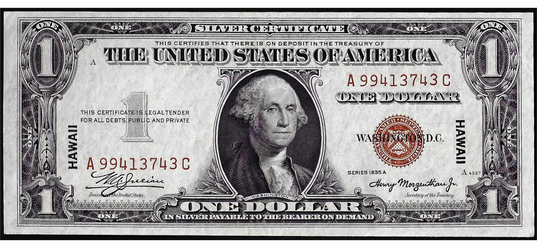 One 1935A $1 Hawaii WWII Emergency Issue Silver Certificate Note.