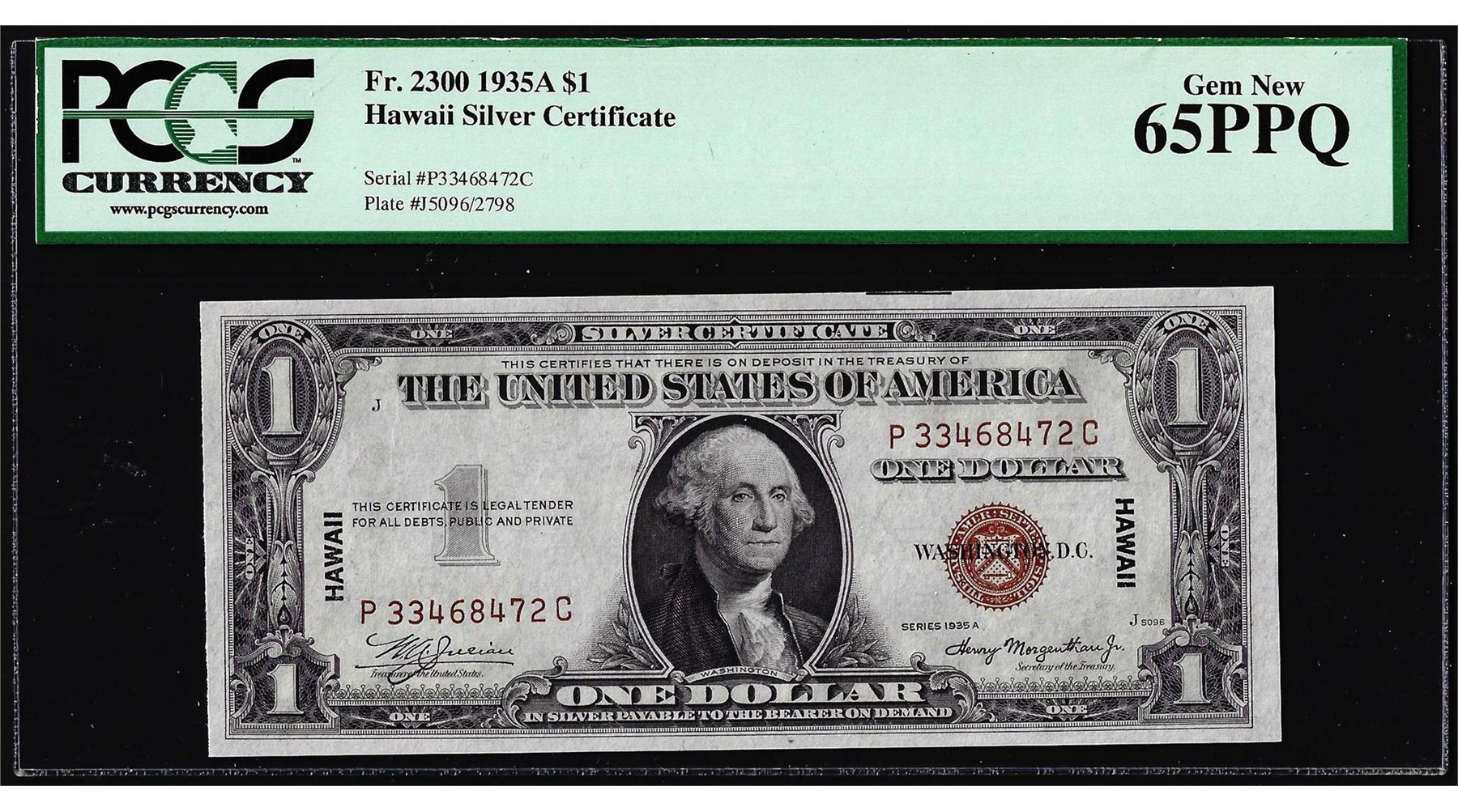 One 1935A $1 Hawaii WWII Emergency Silver Certificate Note Fr.2300 PCGS Gem New 65PPQ. PCGS Graded.