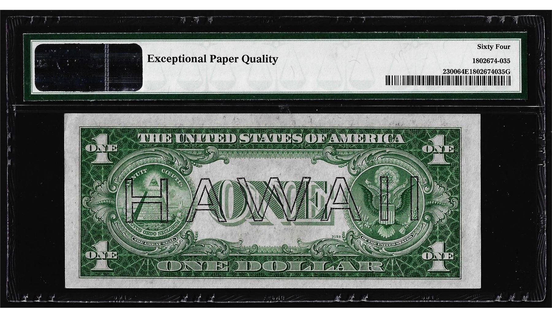 One 1935A $1 Hawaii WWII Emergency Silver Certificate Note PMG Choice Uncirculated 64EPQ. PMG Certified.